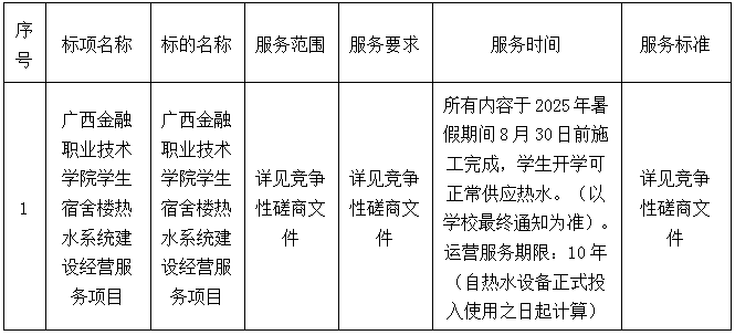 二、項目名稱:廣西金融職業技術學院學生宿舍樓熱水系統建設經營服務項目
